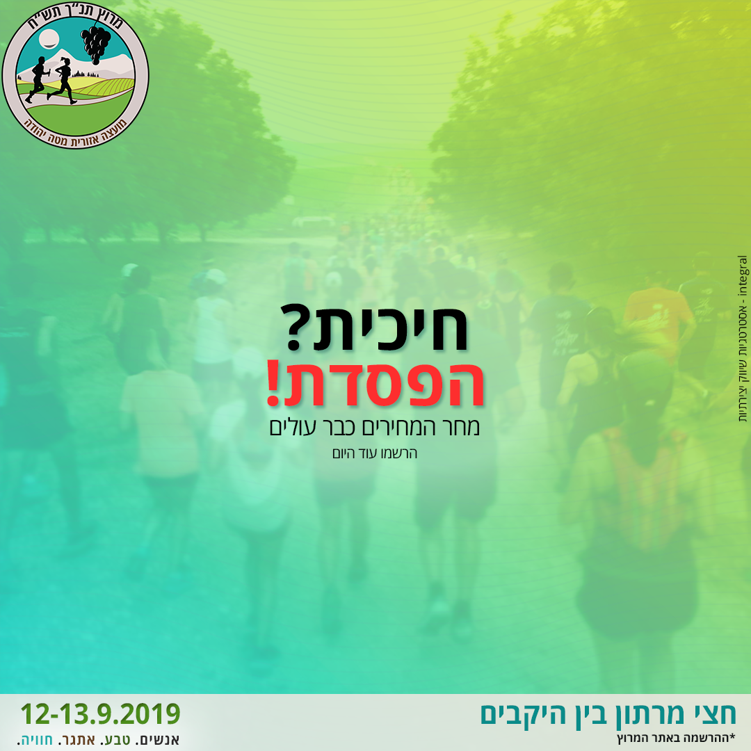 The Bible Race is a messenger race, a half marathon and an ultra, founded in 2013 and created out of a love of running, nature, heritage, community and challenge. The race takes place in breathtaking landscapes in the mountains and plains of Judea, in the settlements of the Mateh Yehuda Regional Council and in the places where the heroes of the people worked from Bible times until 1948. It is an experiential and circular terrain race where the runners along it meet mountains and ravines, paths and streams, cliffs and springs, vineyards, wide fields and amazing views of the Judean mountains and the coastal plain. The route allows you to experience through your feet historical events in which the heritage was engraved from biblical times such as: Tel Azka, Tzora, Ayalon Valley and Ella Valley until the days of 1948 through Burma, Operation Mountain, Latrun, Harel, spur branch and the Battle of the 5th. The combination is the combination of the landscapes, the atmosphere of "together", the cross-country running that combines experience and challenge, the village we establish for the benefit of the event and the great atmosphere throughout the race and the fact that everyone can participate in the race, even if it is his / her first race. Atmosphere: The year is 2019. The month is March - a little less than half a year into the race and we were chosen to manage all the marketing activities of the race in its seventh year.